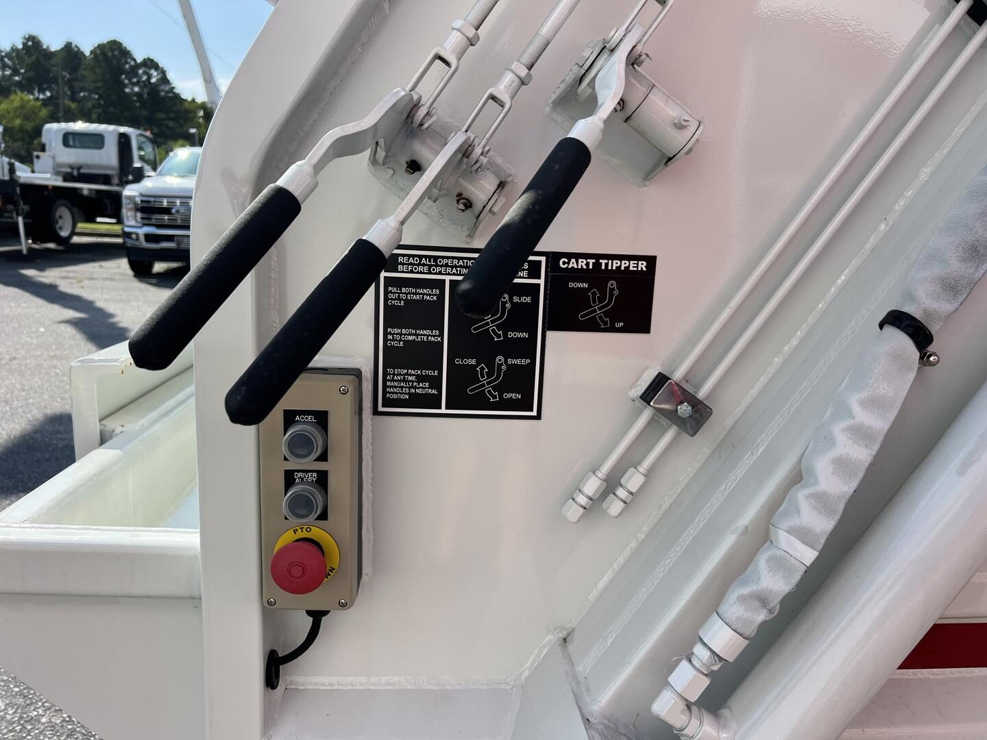 The 8 cubic yard Diamondback body features a 1 cubic yard hopper and 54-inch hopper opening to support smooth loading operations. With a rapid 8–10 second hopper cycle time and consistent hydraulic performance, this truck is engineered to keep collection routes moving efficiently.