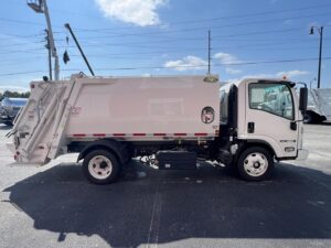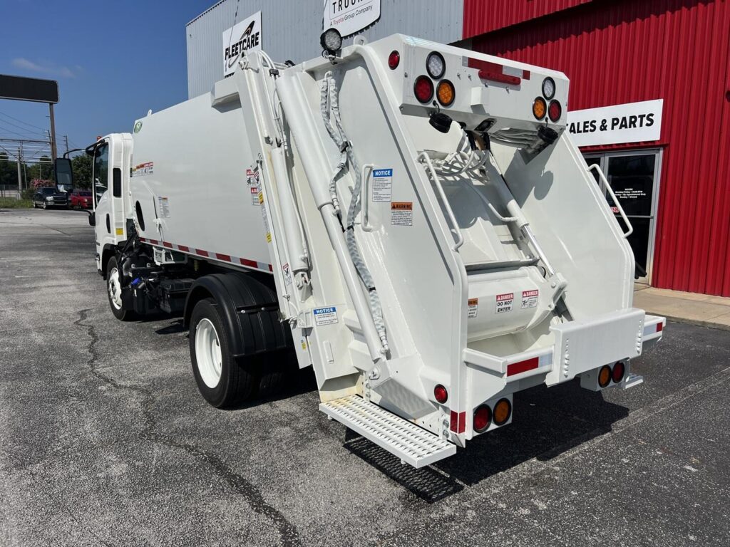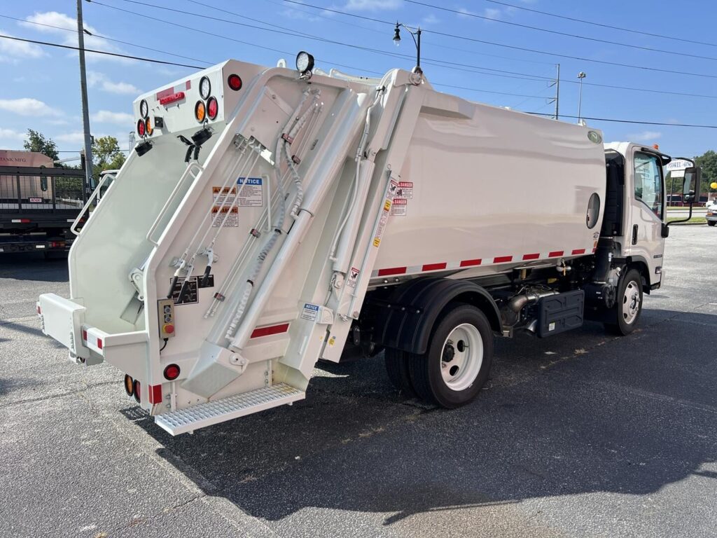 The 2024 Isuzu NRR New Way Diamondback is a compact 8 yard garbage truck built for efficient residential and light commercial refuse collection. Mounted on the Class 5 Isuzu NRR chassis, this unit offers dependable handling and daily route reliability.